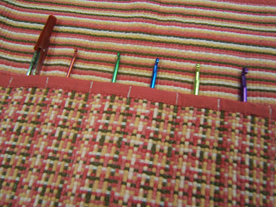 It is a pretty peachy pink and red and green - made just like a pencil roll but instead of pencils - I immediately loaded it with .......